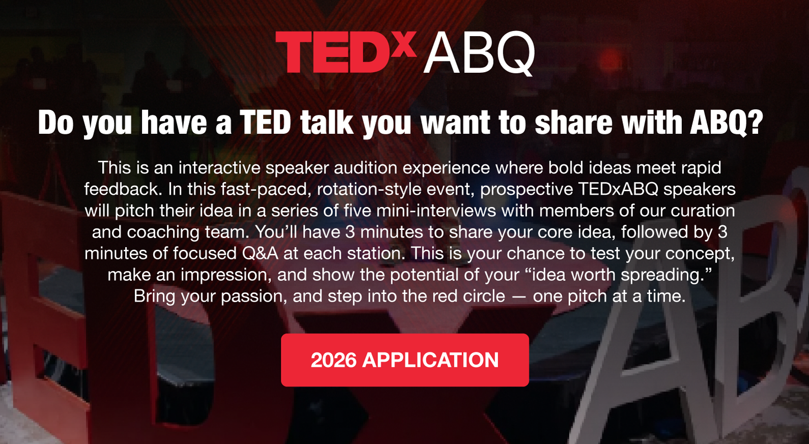 TEDxABQ is a volunteer-powered movement inspired by the global TED mission. Encompassing the greater Albuquerque, NM metro area, it aims to fulfill its mission as a dynamic platform that unites diverse thinkers and doers across the region.